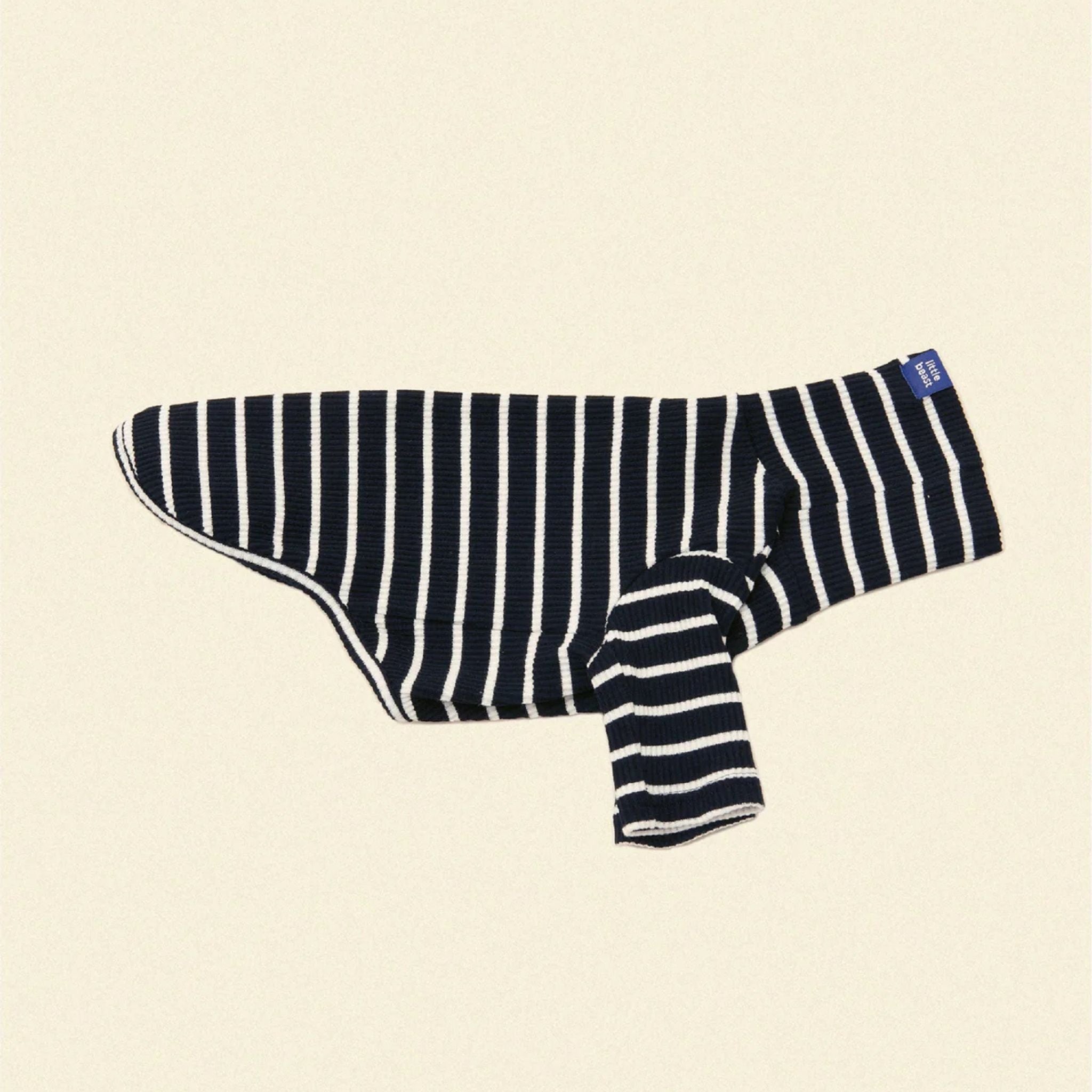 特に特殊体型の犬種さんは専用服以外を選ぶ際に不安がつきものかと思います。着用時のフィット感またはゆるっと感の好みはあるであと思いますが、伸縮性があるお洋服ですのでサイズに迷った際は小さい方をおすすめします。