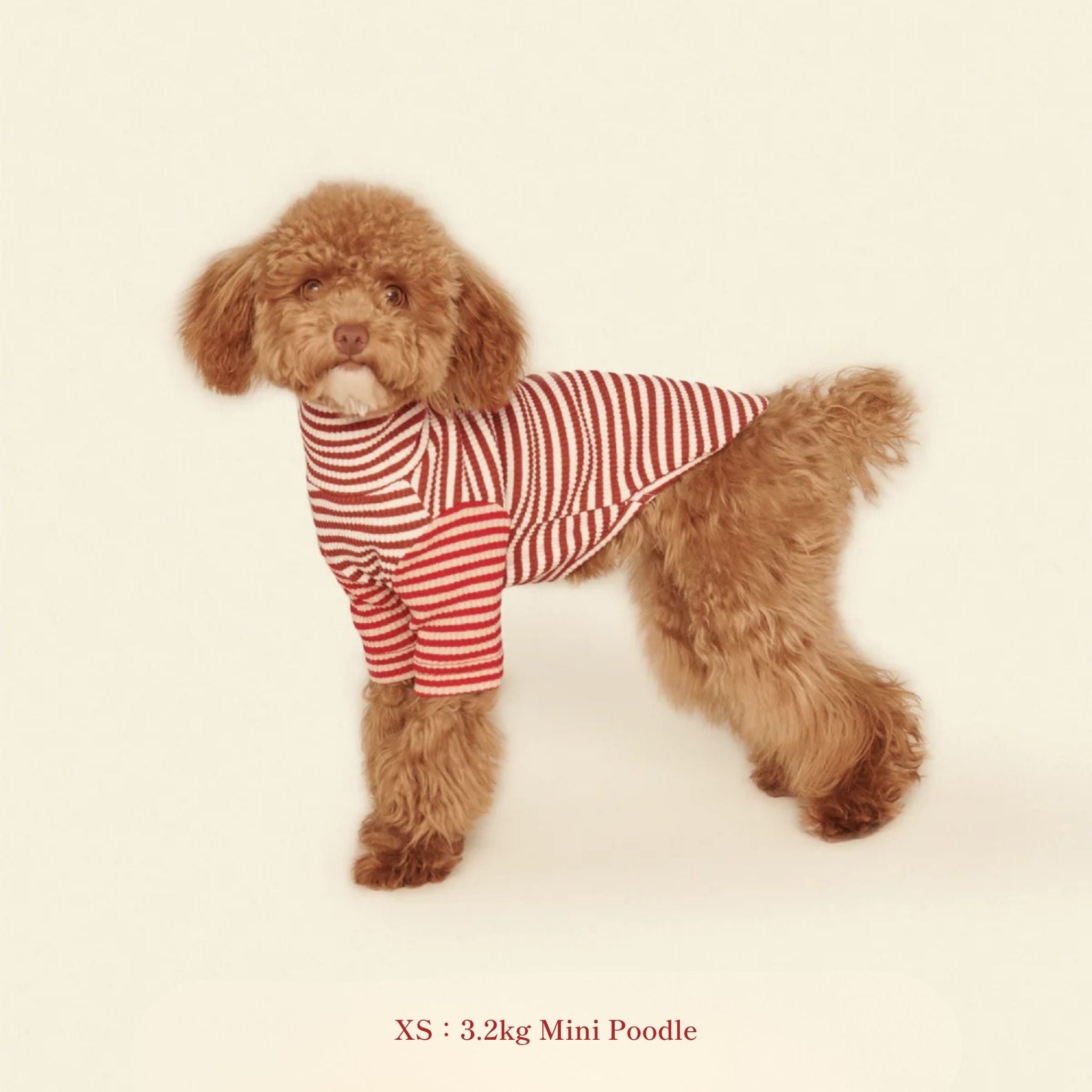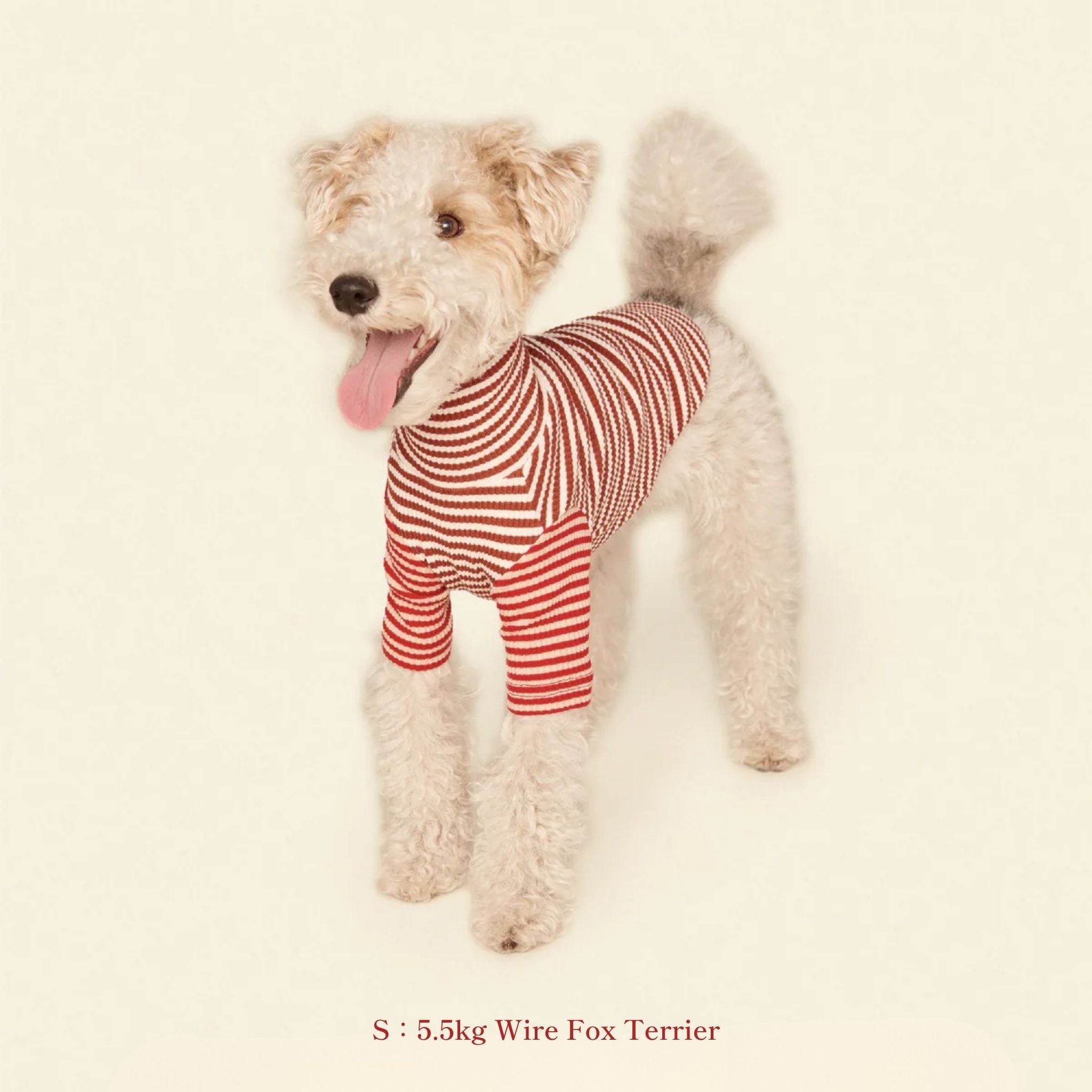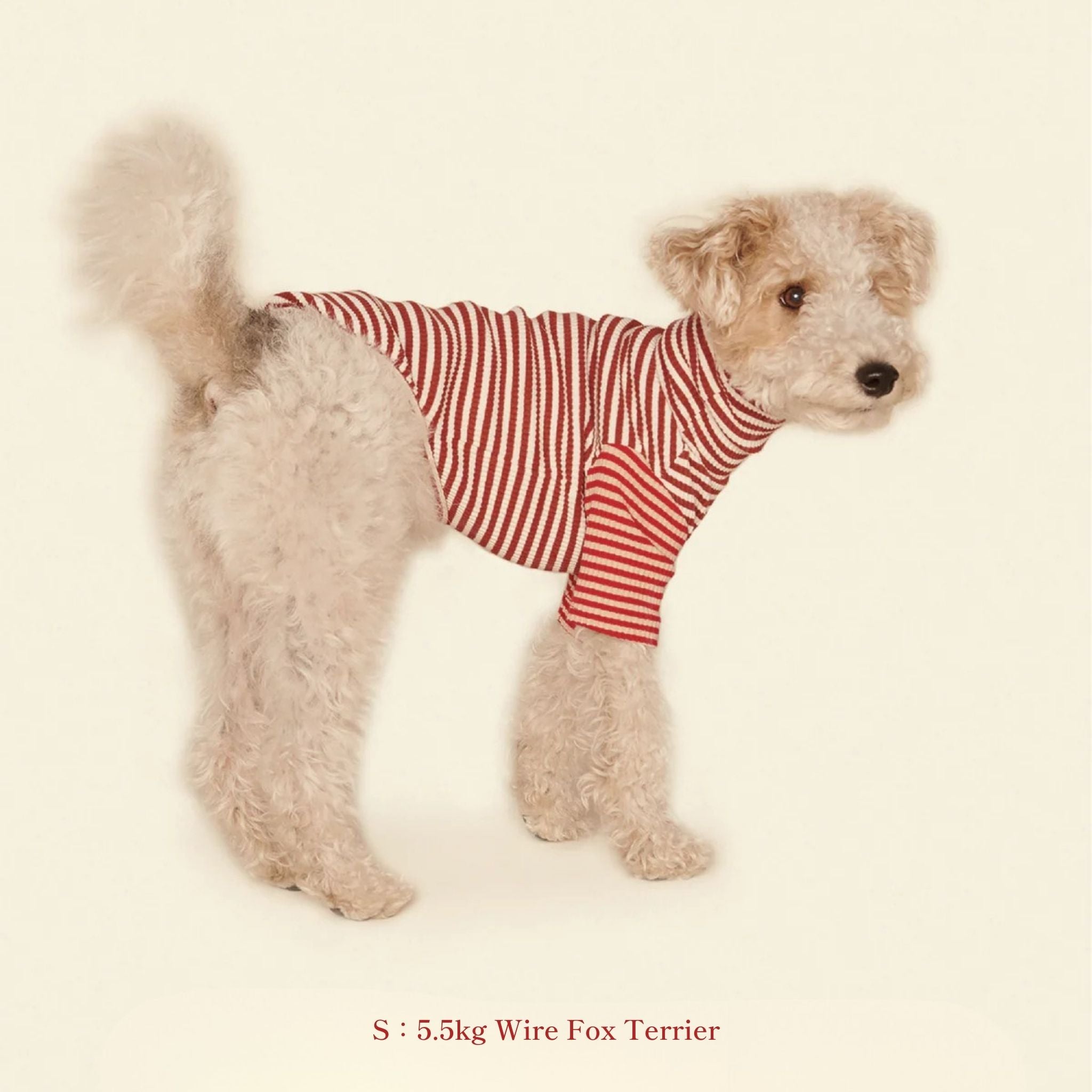 肉厚なコットン混素材のリブ編みで仕立てられているので、縦に横に360°伸びてくれるため愛犬ちゃんの体にしっかりフィットしてくれます。